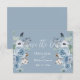 Reserve A Data Elegante Floral Azul e Branco em Grafia Save The D