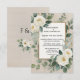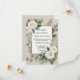 Anuncie o seu dia especial com este cartão postal Save the Date rústico boho, projetado com rosas brancas, folhagens e um visual de linho natural. Perfeito para casamentos elegantes no campo. Personalize com seus nomes e data.