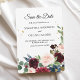 Anuncie seu grande dia com estilo com este cartão de Save the Date de aquarela elegante, apresentando flores românticas em burgundy, rosa e azul-marinho com delicados acentos de respingos de ouro. Perfeito para casamentos de outono ou inverno, este modelo oferece uma estética atemporal e moderna. Personalize facilmente os nomes, data e detalhes para criar um anúncio único que seus convidados adorarão.