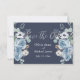 Simples cartão moderno de “Save the Date” floral em azul escuro e branco. Os nomes são feitos em letra cursiva branca elegante. Perfeito para aquele casamento de primavera, verão, outono ou inverno.