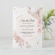 Anuncie seu dia especial com elegância usando este cartão Save the Date floral rosa pastel. Com rosas cor-de-rosa delicadas, flores secas e detalhes geométricos dourados, este design moderno adiciona um toque romântico suave à papelaria do seu casamento. Totalmente personalizável com seus nomes, data e local do casamento, este cartão é perfeito para casais que buscam um anúncio elegante e atemporal. Ideal para casamentos de primavera, jardim, boho ou temas românticos.