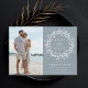 Este cartão elegante de salvar a data do casamento apresenta uma coroa de silhueta de flores silvestres com sua foto e iniciais do casal no verso. Para uma personalização mais avançada deste design, por favor clique no BOTÃO AZUL DE FERRAMENTA DE DESIGN acima!