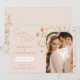 Elegante Save the Date de Casamento Boho Wildflowers com Foto. Lindas flores silvestres em aquarela bege e rosa, elegantes e doces, e foto do casal.
