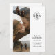 Estilo de casamento salvar a data personalizado com três das suas fotos em um design assimétrico e seu monograma com um belo e comercial.