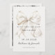 Convite de casamento "Estamos nos casando" save the date com um design de laço branco elegante e fonte de letra manuscrita. Adicione sua foto na parte de trás para um toque pessoal.