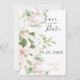 Elegante Pink Lili | Ferimento Fólico De Ivory Rosa Salvar A Data. Este belo design tem aquarelas Lírios brancos e cor-de-rosa e rosas de marfim. Personalize o modelo de texto com os detalhes do casamento.