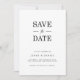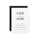 Moderno, formal e elegante, salve o cartão de data. Os recursos do design salvam o script de data em letras pretas em um fundo branco.