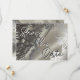 Um design de casamento simples, mas elegante, apresentando um padrão de renda preta com fontes sofisticadas.