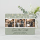 Elegante cartões salve a data de fotos de casamento verdes com uma fonte moderna. Personalize facilmente esta foto verde sábio e salve a data com suas imagens e detalhes de casamento, incluindo um site de casamento.