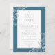Elegante salva a data de casamento floral azul e prata. Personalize com seus nomes e detalhes especiais do casamento em texto prateado chique. O verso apresenta um lindo padrão floral prateado. Desenhado por Thisisnotme©
