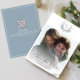 Anuncie seu dia especial com esta elegante salva-vidas, apresentando um maravilhoso modelo de foto de casamento enquadrado por um monograma clássico de coroa. O design floral azul empoeirado e a escrita de caligrafia minimalista criam um aspecto de eterno, enquanto a vegetação romântica típica da flor adiciona um toque de charme. Perfeito para mostrar a noiva e o monograma do noivo, este simples modelo de foto combina o estilo formal tradicional com uma estética simplista e suave. Um belo guardião para os seus entes queridos!