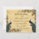 Cartão Salve o Dia com lindos pavões turquesa e roxo emoldurados com trabalho em filigrana vitoriano vintage.