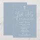 Este convite de data de salva da primeira comunhão azul empoeirado elegante script pode ser personalizado com todas as informações da sua celebração especial. Criado por Thisisnotme©