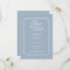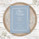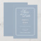 Um convite de casamento em azul poeira inspirado no estilo art déco com tipografia elegante. Criado por Thisisnotme©