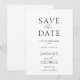 Cartão de Save the Date de Casamento Elegante Script Simples Preto e Branco. Design moderno com script preto elegante em branco clássico. Personalize os detalhes do save the date. Todas as fontes de texto e cores são personalizáveis. Convidamos você a visitar nossa loja Zazzle, Austen & Grace, para produtos correspondentes e mais. Por favor, entre em contato conosco se precisar de ajuda.