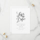 Simples cartão de anúncio de salvar a data com elegante script preto e branco com coração de amor. Adicione os detalhes do seu anúncio especial em um texto clássico.