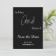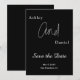 Este elegante preto e branco salvar a data é perfeito para um casamento moderno. o design simples apresenta caligrafia branca elegante em um fundo preto.