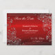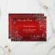 Um design fabuloso e ornamentado com redemoinhos em dourado falso e pequenas flores. Sobre um fundo vermelho rubi, esta é um elegante cartão de "salve a data" para o seu casamento. O texto deslocado copia as linhas dos floreios e redemoinhos do padrão decorativo. Se você decidiu que vermelho e cinza prata serão as cores principais do seu casamento, esta é uma excelente escolha.