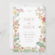 Deixe a beleza eterno do passado inspirar sua celebração romântica com nosso legante Vintage Floral Salvar a Data. Criamos o equilíbrio perfeito de cores vibrantes, retrorativas e visuais moles e elementos capríticos para dar vida ao seu casamento dos sonhos. Nossos matizes únicos e românticos de azáleas e peônias cor-de-rosa pálidas, folhas botânicas verdes esmeraldas, flores silvestres laranja e amarelas brilhantes, beija-flores brancos e borboletas certamente criam um cenário perfeito e inesquecível para seu dia especial. Encontre produtos correspondentes na Elegant Vintage Chinoiserie Floral Collection.