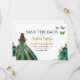 Anuncie seu dia especial com uma encantadora princesa verde esmeralda Quinceañera Salve o convite de data. Apresentando uma paleta verde esmeralda regal e detalhes elegantes, este convite dá o tom para uma celebração real. Adorado com delicados ajustados de sotaque para uma princesa, ele captura perfeitamente a magia de sua próxima quinceñera. Este design de eterno convida os convidados a marcar seus calendários e a se preparar para um dia inesquecível cheio de beleza, alegria e lembranças queridas enquanto você comemora seu aniversário de 15 em estilo.