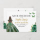 Anuncie seu dia especial com uma encantadora princesa verde esmeralda Quinceañera Salve o convite de data. Apresentando uma paleta verde esmeralda regal e detalhes elegantes, este convite dá o tom para uma celebração real. Adorado com delicados ajustados de sotaque para uma princesa, ele captura perfeitamente a magia de sua próxima quinceñera. Este design de eterno convida os convidados a marcar seus calendários e a se preparar para um dia inesquecível cheio de beleza, alegria e lembranças queridas enquanto você comemora seu aniversário de 15 em estilo.