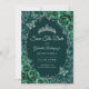 Emerald Green e prata Quinceanera, salvem o cartão. Recursos, fontes de script, borboletas, rosas de aquarela e tiara. Perfeito para uma elegante celebração de glam estilo princesa. Personalize com seus próprios detalhes. Impressos convites Zazzle ou modelo de impressão digital instantânea para download.
