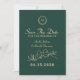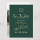 Casamento elegante, moderno, mínimo, simples e esmeralda verde salve o convite de data com monograma no topo, foto no verso, desenho de folha de ouro de casais românticas e roteiro de caligrafia de tendências.