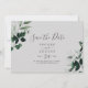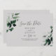 Esta cinza verde esmeralda horizontal, para salvar a data é perfeita para um casamento de boho. A elegante, porém rústica, design apresenta folhas de cor verde-d-água escura e umeucalipto com uma moderna sensação de floresta boêmica.