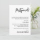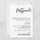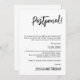 Apresentando o Cartão de Anúncio "Adiado" do Elegance Collection - uma forma na moda e divertida de compartilhar o atraso inesperado nos seus planos de casamento. Esta placa lateral, caracterizada por linhas limpas e estética moderna, oferece uma canvas elegante para transmitir atualizações importantes aos seus queridos convidados. O cabeçalho proeminente "ADIADO" no grande e ousado escrevendo imediatamente chama a atenção, seguido de uma mensagem caprichosa: "Então, você sabe como eles dizem que casamentos são sobre timing? Bem, a nossa decidiu fazer um desvio! Acontece que nosso encontro original foi apenas um ato de aquecimento para o show real." O cartão contém um espaço para inserir a nova data de casamento, garantindo que seus convidados sejam informados com estilo. A mensagem continua com humor: "Considere esta nossa maneira de testar sua dedicação a ser nossa batida de casamento favorita. Prometemos que o atraso é apenas para efeitos dramáticos. Pipoca e paciência são apreciadas." O anúncio é completado com uma expressão de gratidão de fechamento, "Obrigados por fazerem parte de nossa intermissão estendida!" assinada com os nomes dos casais abaixo. Feito com precisão e sofisticação, o Cartão de Anúncio de "Adiamento de Desvio" da Elegance Collection garante que mesmo em momentos inesperados, suas atualizações são transmitidas com humor e com o mesmo nível de graça que define sua história de amor.