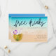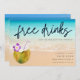 Engraçado "Bebidas Grátis (e vamos nos casar)" praia com design de coco, salve a data para o seu casamento na praia. Um casual salva a data que seus amigos e família vão adorar e isso vai dar o tom para a festa do ano - seu casamento!