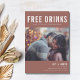 Casamento engraçado salve os cartões de data em uma moderna cor de ferrugem, inspirada no inverno, com design de texto branco com seu design personalizado que dizia "Bebidas grátis (e vamos nos casar)". Personalize a parte frontal da placa com sua foto horizontal (recorte para retângulo antes de carregar para obter melhores resultados). Adicione seus nomes, data do casamento e local. Personalize a parte de trás do cartão com os detalhes do seu casamento. Entre em contato comigo através do botão abaixo se precisar de ajuda.