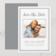 O design moderno e simples de moldura de foto para Save The Date apresenta sua foto de noivado favorita enquadrada em uma moldura cinza última e moderna sobre um fundo branco crocante. Personalize e compartilhe os detalhes do seu noivado e casamento com seus convidados com letras e caligrafia cinza última e moderna. O design é completado com uma moldura dupla moderna em cinza. O design de configuração de retrato paisagem (largura maior que altura) funciona lindamente com fotos aproximadas ou fotos retangulares de você e seu noivo em um local pitoresco. Use sua imaginação e escolha sua favorita! Contate convitesuites@gmail.com para perguntas ou pedidos personalizados.