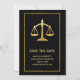 Celebração de graduação salve o cartão de data com uma imagem de escala de ouro em um plano de fundo preto. Simples e elegante.