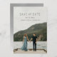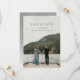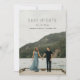 Esta opção Save the Date Card contém texto mínimo para deixar a foto sobressair. Adicione informações extras na parte traseira com um plano de textura de aquarela.