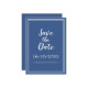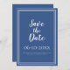 Anuncie seu próximo evento com nosso moderno azul e branco Salve o anúncio do casamento da Data! O conjunto de convites apresenta um design minimalista com uma borda dupla de quadros em branco nítido sobre um fundo azul clássico de tendência. A formulação tradicional proporciona sofisticação eterno mas moderna. Personalize o design de casamento com seu primeiro e sobrenomes e data em letras brancas e roteiro nítidos. A parte traseira da placa corresponde a azul estável.