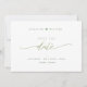 Anuncie sua data de casamento com este lindo casamento, salve o cartão de data. Detalhes modernos de Script escritos à mão em folha verde falsa, tanto na frente como no verso. Voltar com o único Guardar o carimbo/monograma de data com nomes de casais. Estilo simples e limpo. Design verde e branco. Área para o site de casamento, mais informações ou/e mensagem para seus convidados (isto é, "Mal posso esperar para vê-lo lá!").