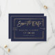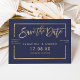 Dourada tipografia no marinho personalizável bloco de cor azul de quadro de ouro, e fitas geométricas de ouro falsas salvam a data do casamento, perfeito para o casamento elegante e na moda,