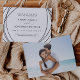 Anuncie sua data de casamento e sua localização no estilo moderno de chic com esses cartões salve a data elegantes com detalhes geométricos e abstrato. Frente mostra seus detalhes de casamento em uma mistura de blocos modernos e letras caligráficas suaves, cercadas por formas irregulares em preto nítido. Adicione uma foto opcional à parte traseira, se desejar, ou remova uma foto de amostra para revelar um padrão anterior de faixas finas e pretas.