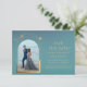 Teal Cósmico Astronomia Espacial da Lua Solar Estrela Dourada da Lua Cósmica Galáxia Mística Salva as Datas Apresenta um sol dourado, lua e estrelas num fundo teal. Dentro é a sua foto favorita e o seu personalizado salva as informações de data. Personalize editando o texto nas caixas de texto. Projetado para você por ©Evco Studio www.zazzle.com/store/evcostudio