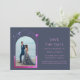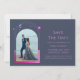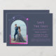 Galáxia Cósmica Célestial Salva as Datas, Astronomia Espacial da Lua Solar Roxo Azul Místico, As Datas apresentam um sol rosa e púrpura, Lua e estrelas armadas sobre um fundo azul. Dentro é a sua foto favorita e o seu personalizado salva as informações de data. Personalize editando o texto nas caixas de texto. Projetado para você por ©Evco Studio www.zazzle.com/store/evcostudio