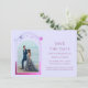 Galáxia Cósmica Célestial Salva as Datas, Astronomia Espacial da Lua Azul Rosa Mística Azul, Cor-de-Rosa, Sol púrpura, Lua e estrelas se enquadram sobre um fundo azul. Dentro é a sua foto favorita e o seu personalizado salva as informações de data. Personalize editando o texto nas caixas de texto. Projetado para você por ©Evco Studio www.zazzle.com/store/evcostudio