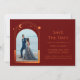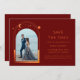 Galáxia Cósmica Vermelha Cinzenta Laranja Sol Lua Estrela da Lua Astronomia Galáxia Célestial Salve As Datas apresentam um sol laranja ouro, lua e estrelas armadas sobre um fundo vermelho. Dentro é a sua foto favorita e o seu personalizado salva as informações de data. Personalize editando o texto nas caixas de texto. Projetado para você por ©Evco Studio www.zazzle.com/store/evcostudio