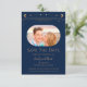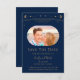 Mística Azul Dourada Sun Moon Star Space Save As Dates apresentam um sol dourado, lua e estrelas armadas sobre um fundo azul marinho escuro. Dentro é a sua foto favorita e o seu personalizado salva as informações de data. Personalize editando o texto nas caixas de texto. Projetado por ©2022 Evco Studio www.zazzle.com/store/evcostudio