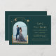 Galáxia Cósmica Célestial Salva as Datas, Astronomia Espacial da Lua Solar Dourada Verde Mística, apresenta um sol dourado, lua e estrelas num fundo verde. Dentro é a sua foto favorita e o seu personalizado salva as informações de data. Personalize editando o texto nas caixas de texto. Projetado para você por ©Evco Studio www.zazzle.com/store/evcostudio