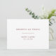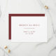 Espanhol simples e moderno salva a data com apenas três linhas de texto. O layout mínimo tem uma linha fina entre o título e seus nomes e data. Todo o texto está em burgundy sobre um fundo branco e o fundo é um burgundy correspondente. O texto e a parte traseira podem ser alterados para qualquer cor desejada. Um design básico, sem fraldas, que é excelente para um casal minimalista.