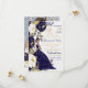 Acentos de folha de ouro falsos com marinho azul e branco lindíssimos com sotaques de flor botânica, uma bela ilustração latina em um vestido e texto personalizado. Salve a data em espanhol - Reserva la Fecha - e o texto de Quinceanera nas costas sobre a foto da aniversariante não é alterável - todo o outro texto é personalizado por você. Isto corresponde a outros itens na nossa Coleção de Quinceanera Floral Azul Marinho.