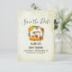 Salve o cartão de data para um aniversário ou chá de fraldas. Com um bonitinho por trás de algumas abóboras cor de água laranja. Uma coroa foliar rodeia-os com uma folha de carvalho e flores laranja e outros ramos e folhas. Background é uma imagem digital de pergaminho de vinheta (o papel não é pergaminho real).