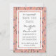 Maneira elegante, moderna e muito na moda para fazer uma de suas mais importantes declarações. Este convite SAVE THE DATE mostra um padrão de aquarela floral com fundo CORAL PINK. O verso das Escrituras vem de Mark 10:8. O inverso é um plano de fundo CORAL PINK com um padrão sutil dizendo SAVE THE DATE. Personalize seus detalhes na frente. Itens correspondentes disponíveis.