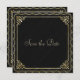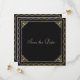 Borda elegante e na moda dourada no plano de fundo preto texturizado, a placa "Salvar a Data" que pode ser personalizada.
