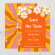 Surpreenda seus amigos e família com este legal cartão Salvar a data com retrorreflector daisy, arch laranja brilhante e texto personalizado. Altere facilmente o texto clicando na opção "personalizar este modelo".
